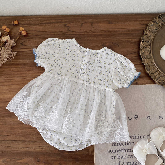 Regular price $39.99 USDRegular priceUnit price / perSale price $39.99 USDSummer Arrival Baby Girls Short Sleeves Floral Pattern Tulle Decorated Bodysuit