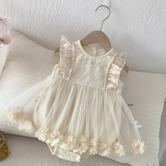 Introducing our Summer Baby Kids Girls Sleeveless 3D Flowers Mesh Strap Dress, the perfect blend of delicate femininity...