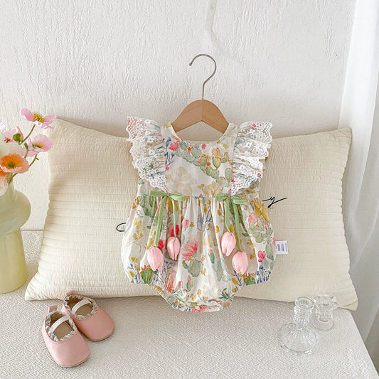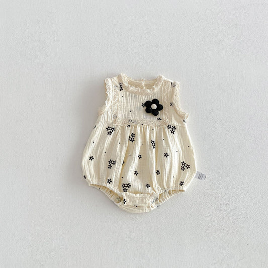 Summer Hot Selling Baby Girls Sleeveless Square Neck Floral Print bodysuit