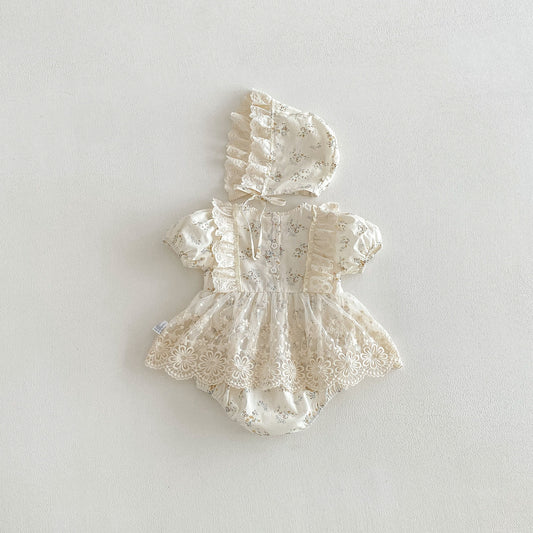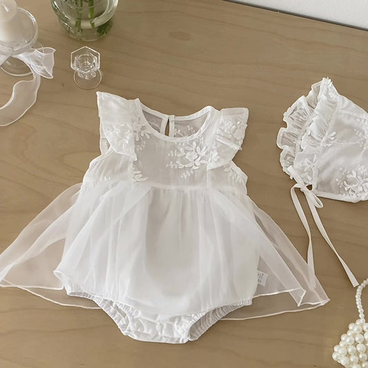 Baby Girl Flower Pattern Butterfly Sleeve Design Cute Dress With Hat