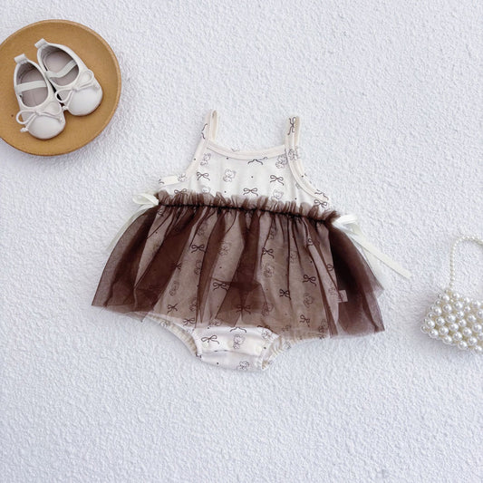 Summer Baby Kids Girls Sleeveless 3D Flowers Mesh Strap Dress