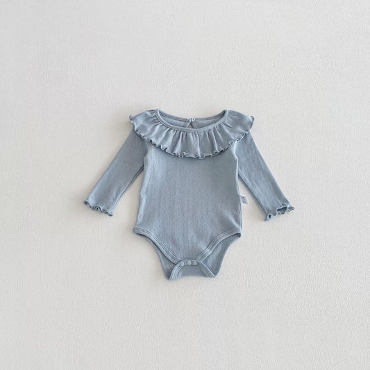 Spring Arrival Baby Girls Long Sleeves Solid Color Bodysuit with Collar
