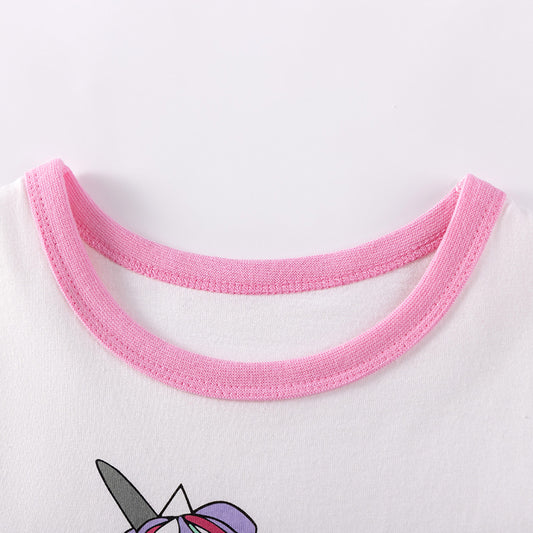 Summer Arrival Unicorn Cartoon Pattern Short Sleeves Tulle Patchwork Dress for Stylish Girls