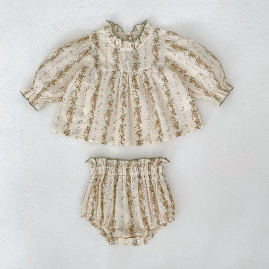 Regular price $38.99 USDRegular priceUnit price / perSale price $38.99 USDSpring Baby Kids Floral Pattern Long Sleeves Top Dress and Bloomers Clothing Set for Girls
