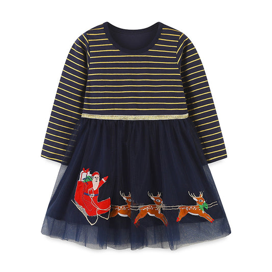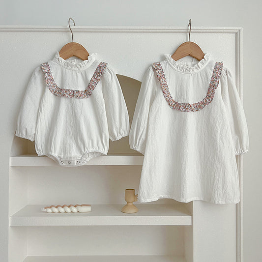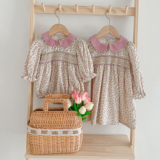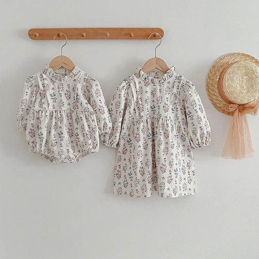 Autumn and Spring Arrival Baby Kids Girls Long Sleeves Flowers Pattern Vintage Dress