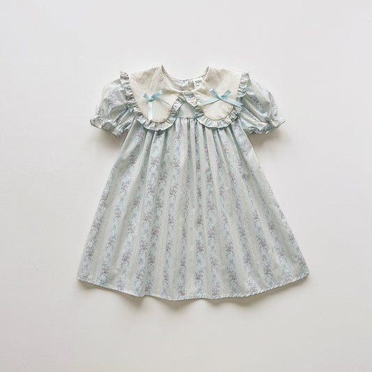 Baby Girl Flower Pattern Butterfly Sleeve Design Cute Dress With Hat