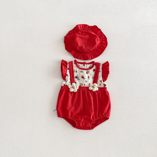Summer Hot Selling Baby Girls Sleeveless Square Neck Floral Print bodysuit