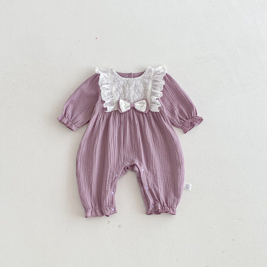 Spring Arrival Baby Girls Long Sleeves Color Patchwork Flowers Pattern Rompers