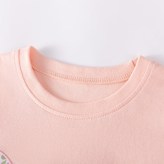 Spring and Autumn Baby Kids Girls Long Sleeves Floral Top and Cartoon Sleeveless Overalls Clothing Set