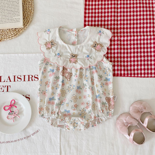 Summer Hot Selling Baby Girls Sleeveless Square Neck Floral Print bodysuit
