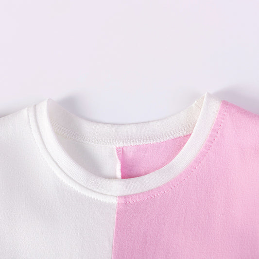 Summer Hot Selling Baby Kids Girls Short Sleeves Cartoon Pattern T-shirt and Plain Pants Clothing Set