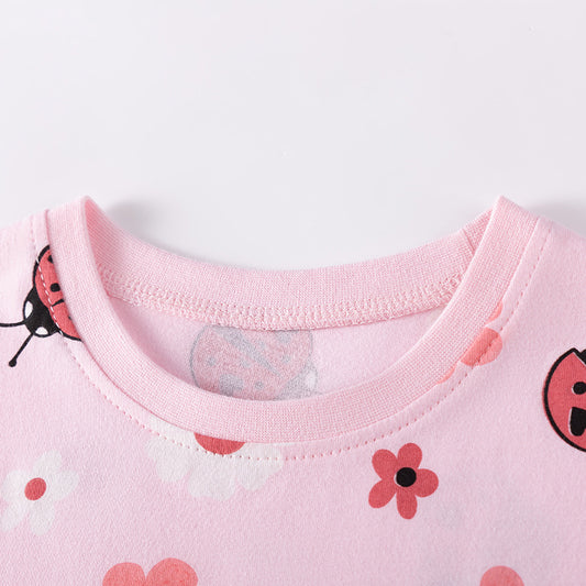 Summer Hot Selling Baby Kids Girls Short Sleeves Cartoon Pattern T-shirt and Pants Clothing Set