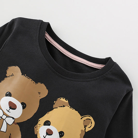 Spring and Autumn Boys Cartoon Teddy Bear Pattern Long Sleeves Top and Plain Pants Clothing Set