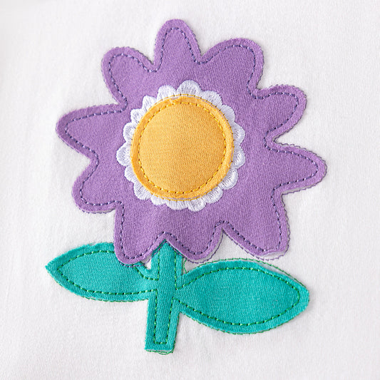 Summer Hot Selling Baby Kids Girls Short Sleeves Flowers Pattern T-shirt and Plain Pants Clothing Set