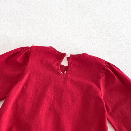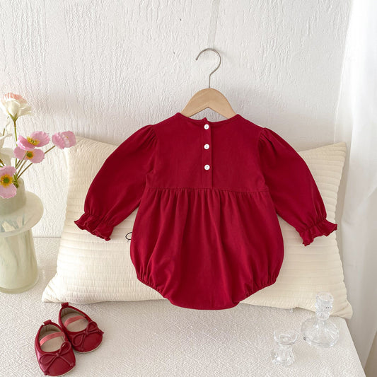 Spring Arrival Baby Girls Long Sleeves Cherry Embroidered Collar Onesies Bodysuits