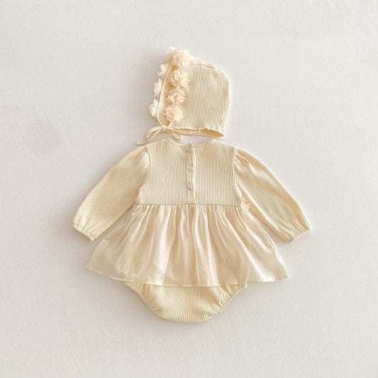 Spring Arrival Baby Girls Cute Floral Pattern Long Sleeves Onesies with Hat