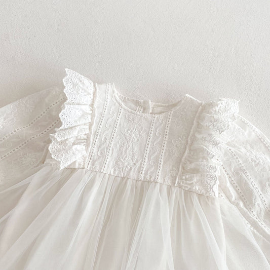 Spring Arrival Baby Girls Cute Floral Embroidered Tulle Long Sleeves Onesies