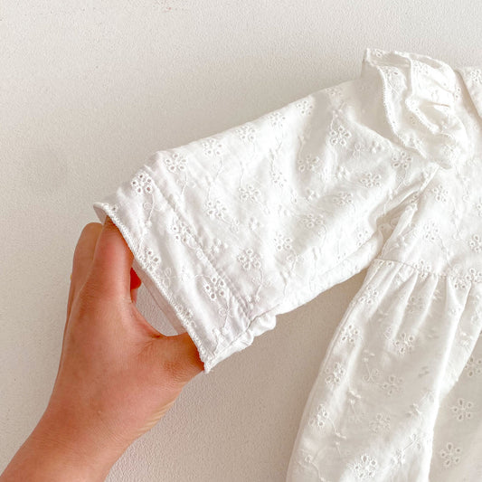 Spring and Autumn Arrival Baby Girls Long Sleeves Floral Embroidery Pattern Collar Base Layer Onesie