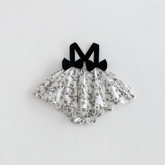Design Summer Baby Kids Girls Sleeveless Flowers Pattern Strap Bodysuit Dress