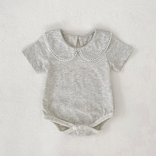 Summer Arrival Baby Girls Solid Color Lace Trim Collar Bodysuit
