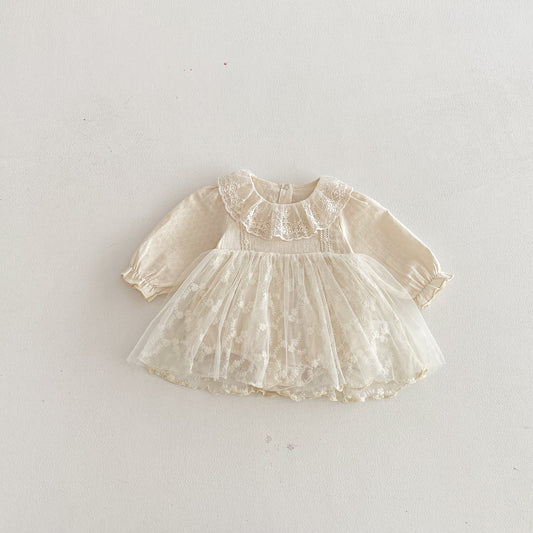 Regular price $43.99 USDRegular priceUnit price / perSale price $43.99 USDArrival Winter Baby Girls Floral Tulle Patchwork Design Long Sleeves Onesies Dress