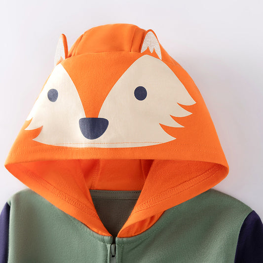 Spring and Autumn Boys Animals Cartoon Pattern Long Sleeves Zip-up Hooded Coat