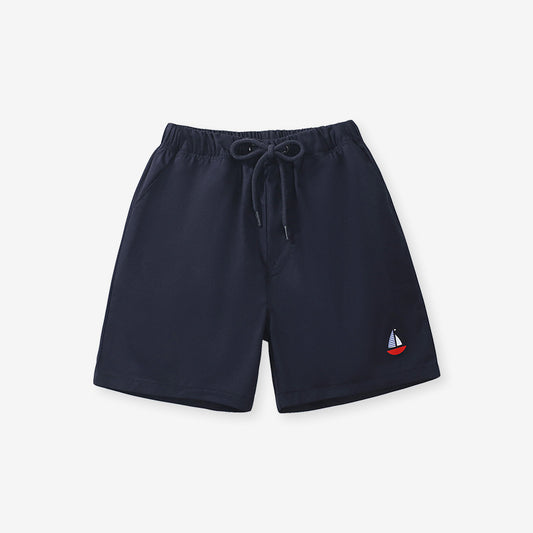 Boys Solid Soft Cotton Casual Style Shorts With Sailboat Logo