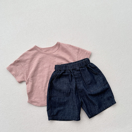 Baby Boy And Girl Solid Color Denim Shorts With Pockets