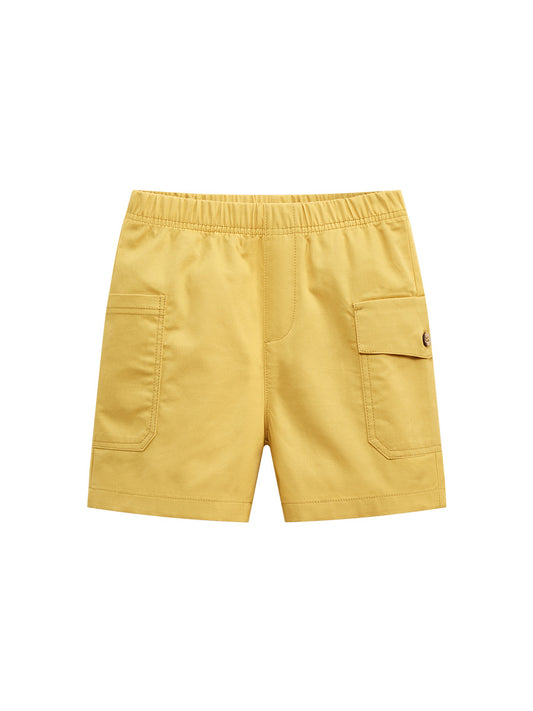 Boys Solid Yellow Cotton Casual Style Shorts With Pockets