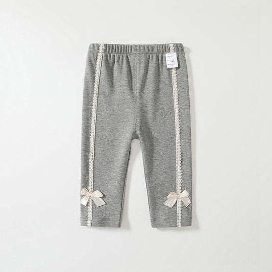 Baby Girl Solid Color Pants Leggings With Bow Decoration