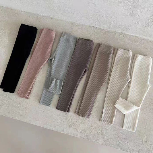 Autumn Arrival Elastic Baby Kids Unisex Solid Color Striped Pattern Pants