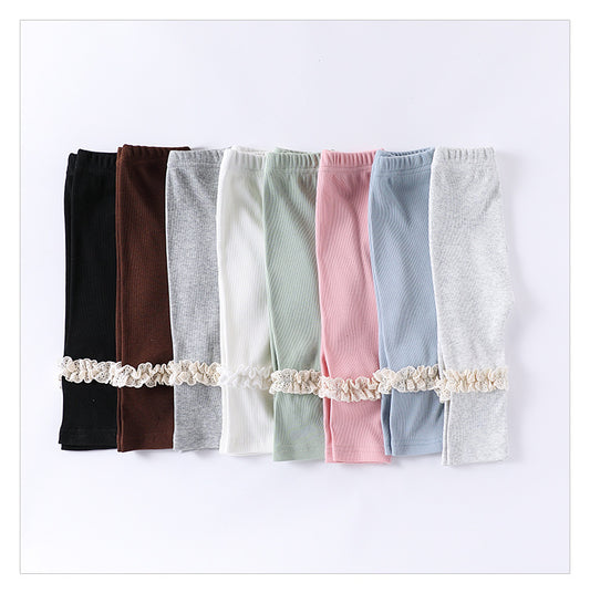 Baby Girl Solid Color Lace Design Tight Pants Leggings