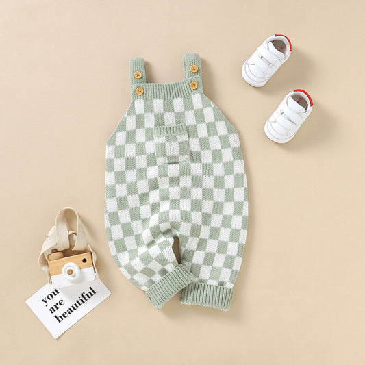 Baby Checkerboard Pattern Strap Design Knit Spring Autumn Rompers