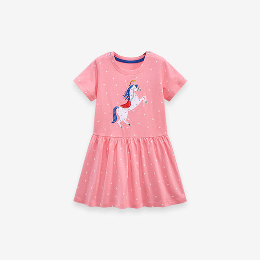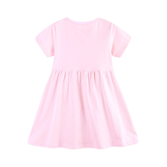 Baby Kids Girls Unicorn Pattern Short Sleeves White Stars Dress