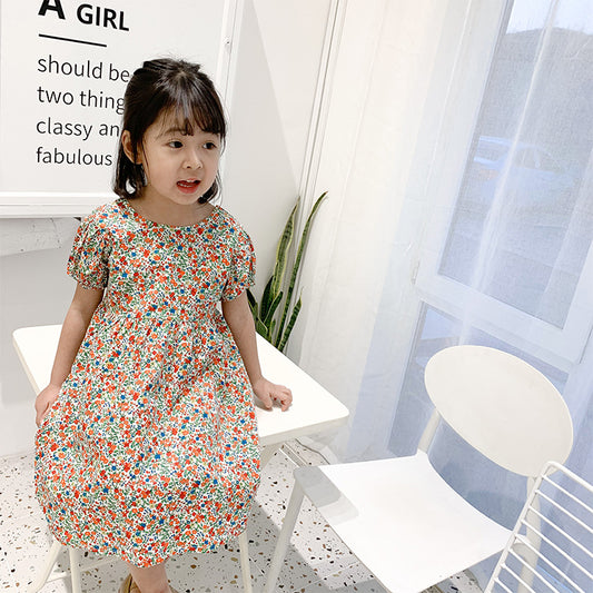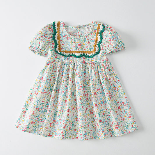 Best Selling Summer Baby Kids Girls Dense Floral Pattern Short Sleeves Dress