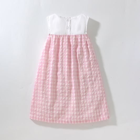 Summer Baby Girls Sleeveless Plaid Patchwork Geese Pattern Dress