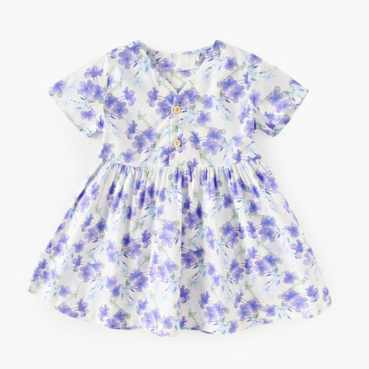 Summer Arrival Baby Girls Elegant Floral Pattern Short Sleeves V Neck Dress