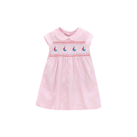 Summer Baby Girls Sleeveless Sailboat Pattern Striped Dress