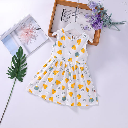 Summer Arrival Baby Girls Casual Vegetable Print Short Sleeves V Neck Dress