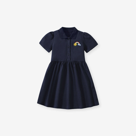 Summer Polo Style Dress for Girls, European and American Cute Rainbow Embroidery Pattern Dress