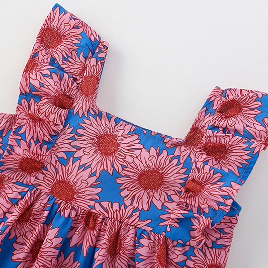 Summer Baby Girls Sleeveless Floral Pattern Single Breasted Dress