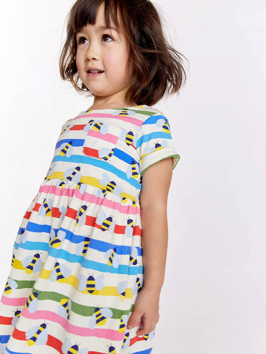 Baby Girls Rainbow Striped Short Sleeves Bees Pattern Dress