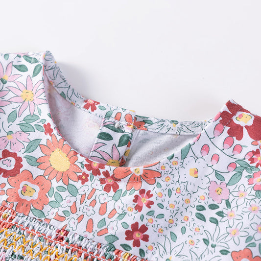 Arrival Autumn Girls Floral Pattern Long Sleeves Crew Neck Dress
