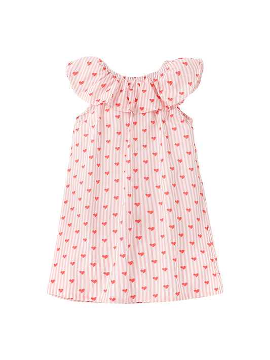 Summer Arrival Girls Sleeveless Red Heart Print Ruffle Collar Dress