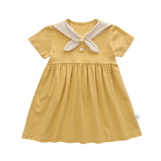 Summer Baby Kids Girls New Design Short Sleeves Preppy Crew Neck Dress