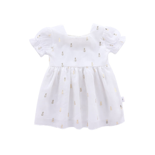 Summer Baby Kids Girls Short Sleeves Square Neck Pineapples Pattern Dress