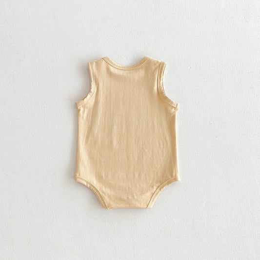 Baby Boy And Girl Cartoon Print Pattern Sleeveless Onesies In Summer