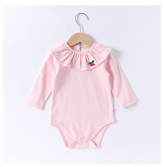 Spring Arrival Baby Girls Long Sleeves Cherry Embroidered Collar Onesies Bodysuits