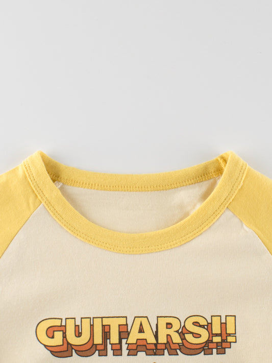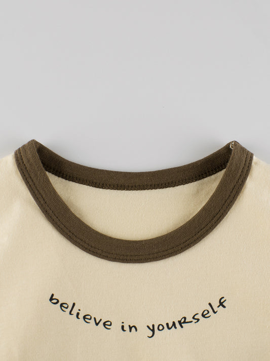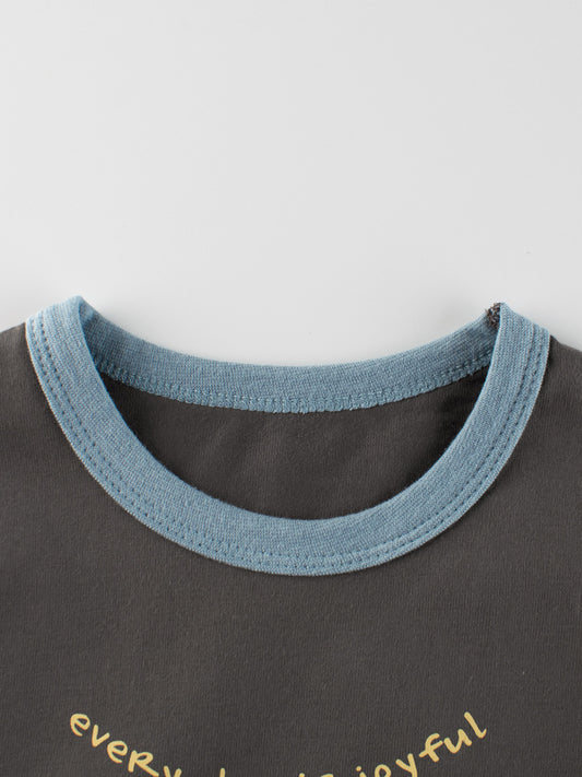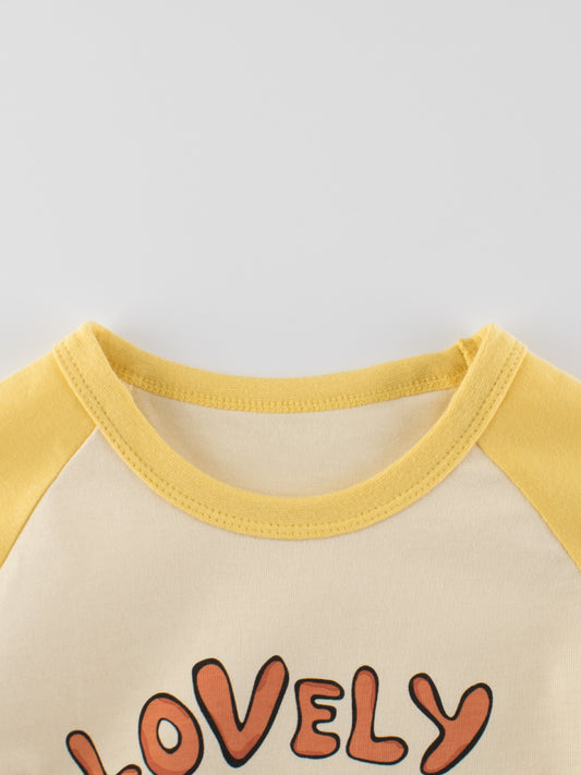 Autumn Arrival Kids Girls Cartoon Print Crew Neck Long Sleeves Color Patchwork Top