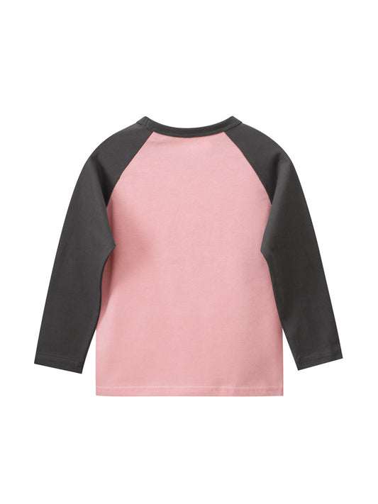 Arrival Kids Girls Cartoon Print Crew Neck Long Sleeves Color Patchwork Top